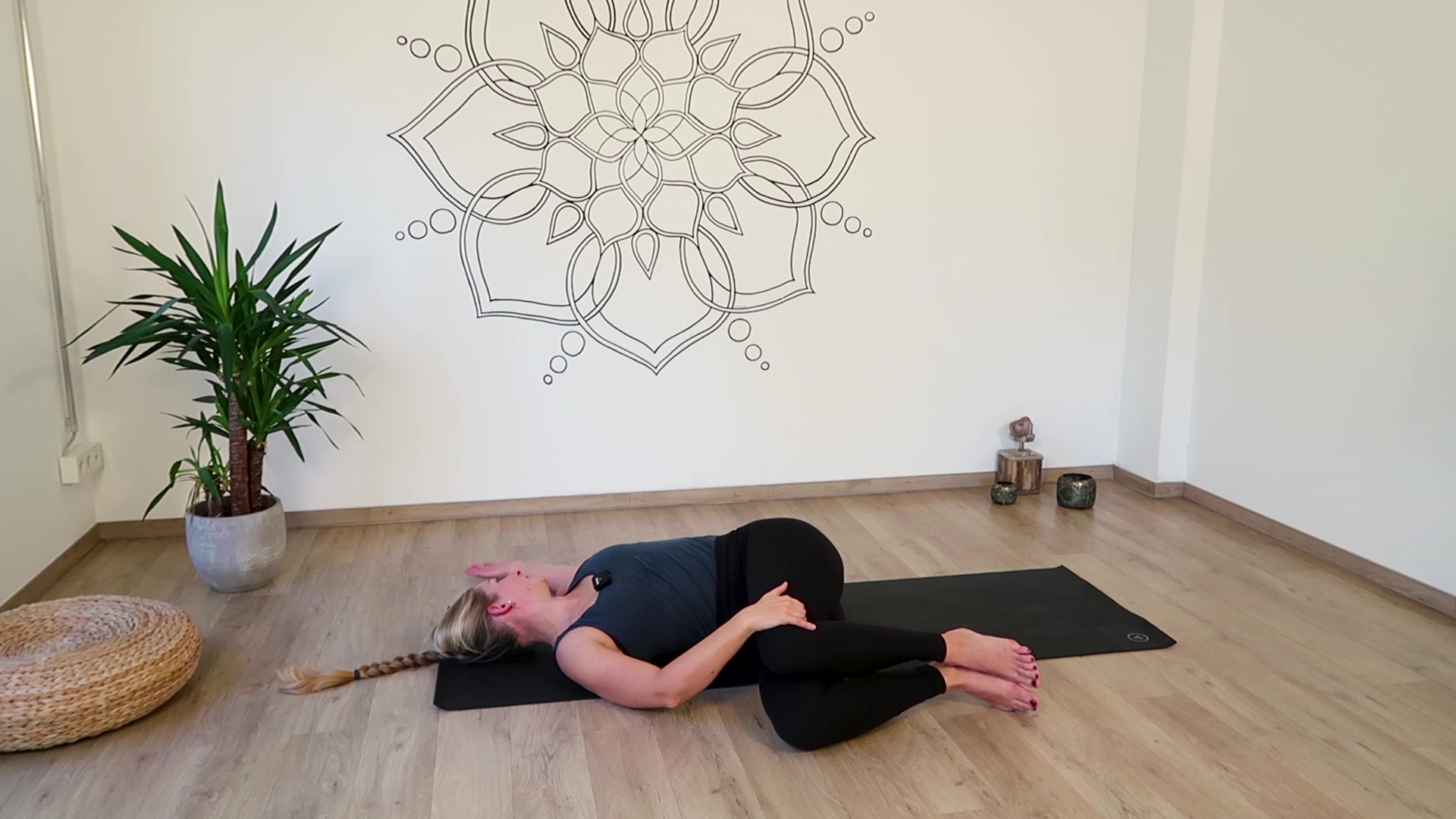 - Ob Yin oder Yang Position: Generell kannst Du über eine bewusste und verlängert Ausatmung in der liegenden Drehung direkt Einfluss auf dein Nervensystem nehmen und so in den Entspannungsmodus schalten.